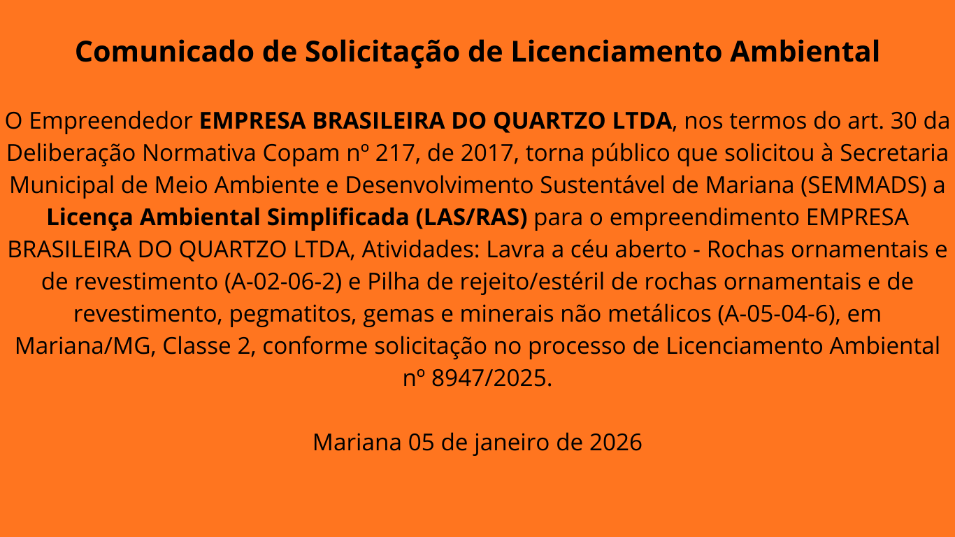 Comunicado de Solicitação de Licenciamento Ambiental